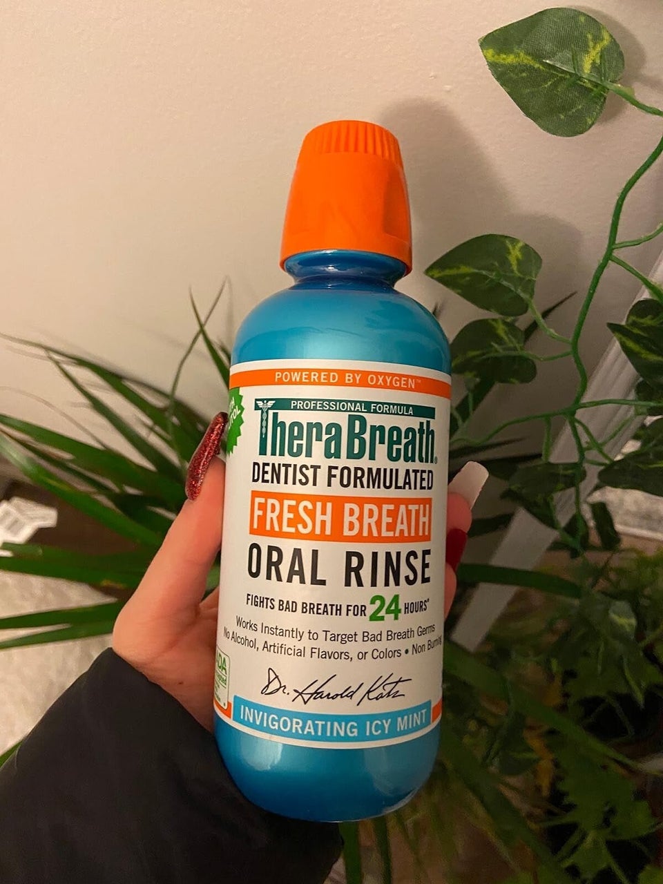 Promising review: "I'm actually a dentist who often has bad breath, which is not a good combination. My oral hygiene is great (tongue scraping, brushing, flossing, etc.), but I have allergies and constantly have a bit of post-nasal drip, which contributes to the bad breath. While this stuff isn't perfect, and my breath doesn't stay fresh all day, it is definitely the longest-lasting product I have tried so far. It is the first thing I have tried that still gives me that minty feeling when I breathe deep 4–6 hours after using it. I've found that gargling and using the TheraBreath throat spray in addition to rinsing with this have greatly improved my breath. Will definitely be buying again." — Alex